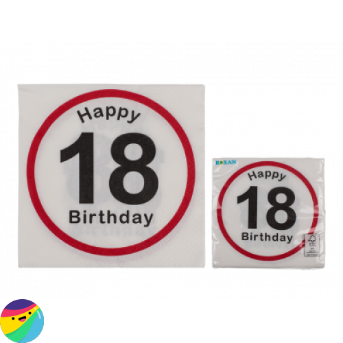 V paketu prejmete 20 3-slojnih papirnatih servietov z motivom Happy BIrthday 18.