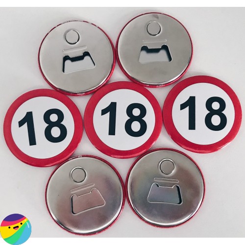Prejeli boste en magnet z motivom prometnega znaka z okroglo letnico in odpiračem za steklenice.