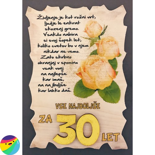 Leseni napis za 30 let - Rože Rumene