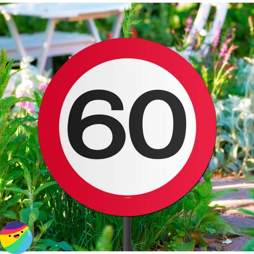 Dekoracija za na vrt. Znak na palici s številom 60.
