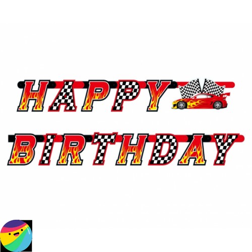 Happy birthday napis v z motivom dirke.