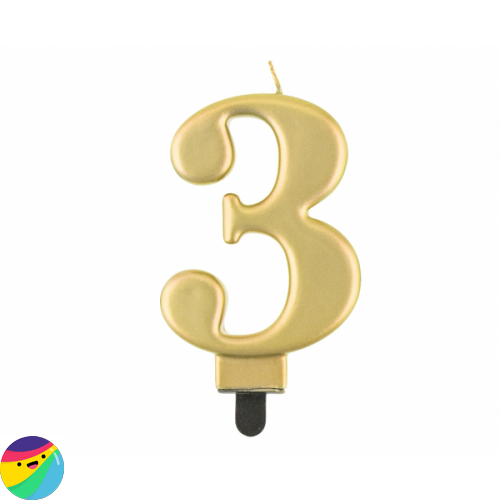 Zlata svečka za na torto v obliki številke 3