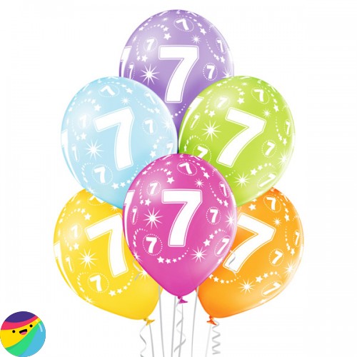V paketu prejmete 6 balonov potiskanih s številko 7.
