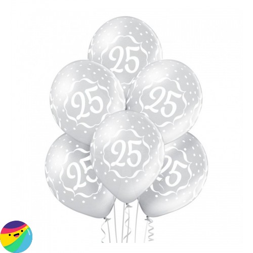 V paketu prejmete 6 balonov potiskanih s številko 25.