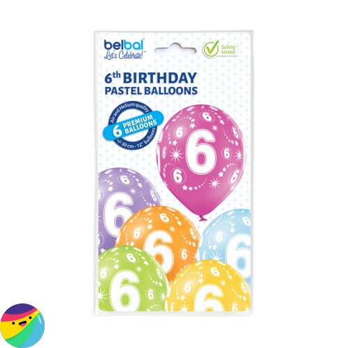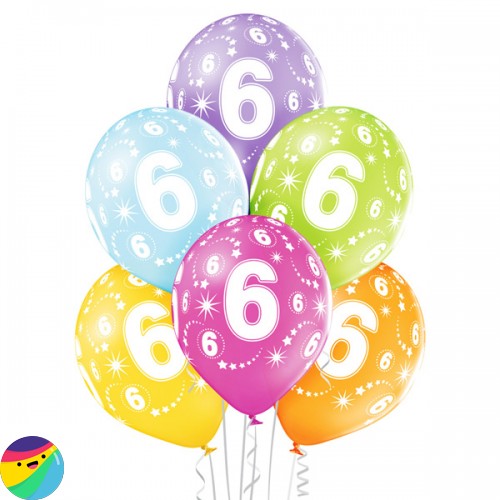 V paketu prejmete 6 balonov potiskanih s številko 6.