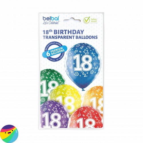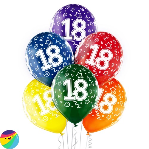 V paketu prejmete 6 balonov potiskanih s številko 18.