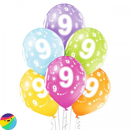 V paketu prejmete 6 balonov potiskanih s številko 9.