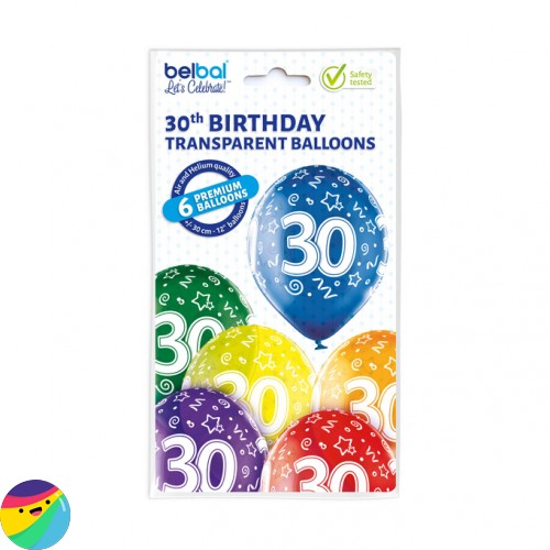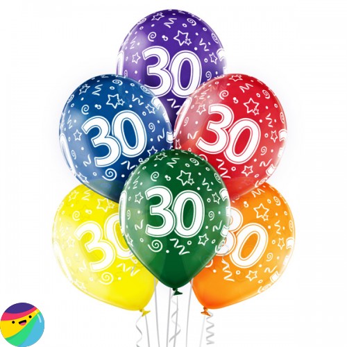 V paketu prejmete 6 balonov potiskanih s številko 30.