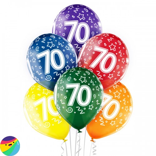 V paketu prejmete 6 balonov potiskanih s številko 70.